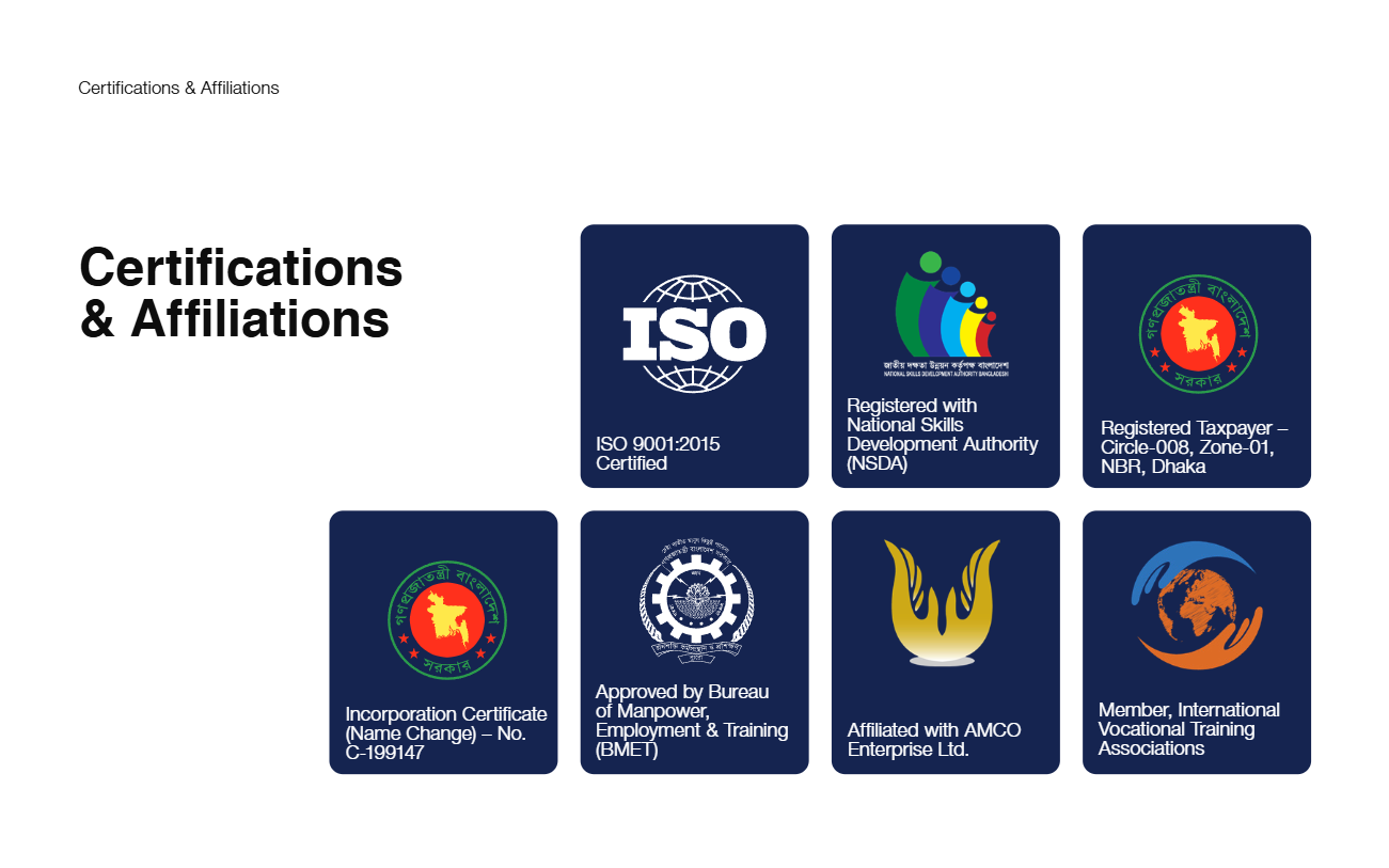 At AMCO Skill Bangladesh (ASB), our leadership brings decades of experience in education, workforce development, and global recruitment. We are driven by the belief that technical education is not just a service—it’s a social responsibility. Under the guidance of a visionary team, AMCO fosters real-world readiness through globally recognized certifications, modern infrastructure, and hands-on learning experiences.